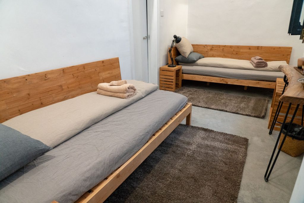 Family rooms have 1 queen bedroom and 1 living room with two twin beds. They fit 3 to 4 people and generally have 1 bathroom.